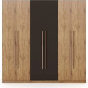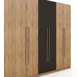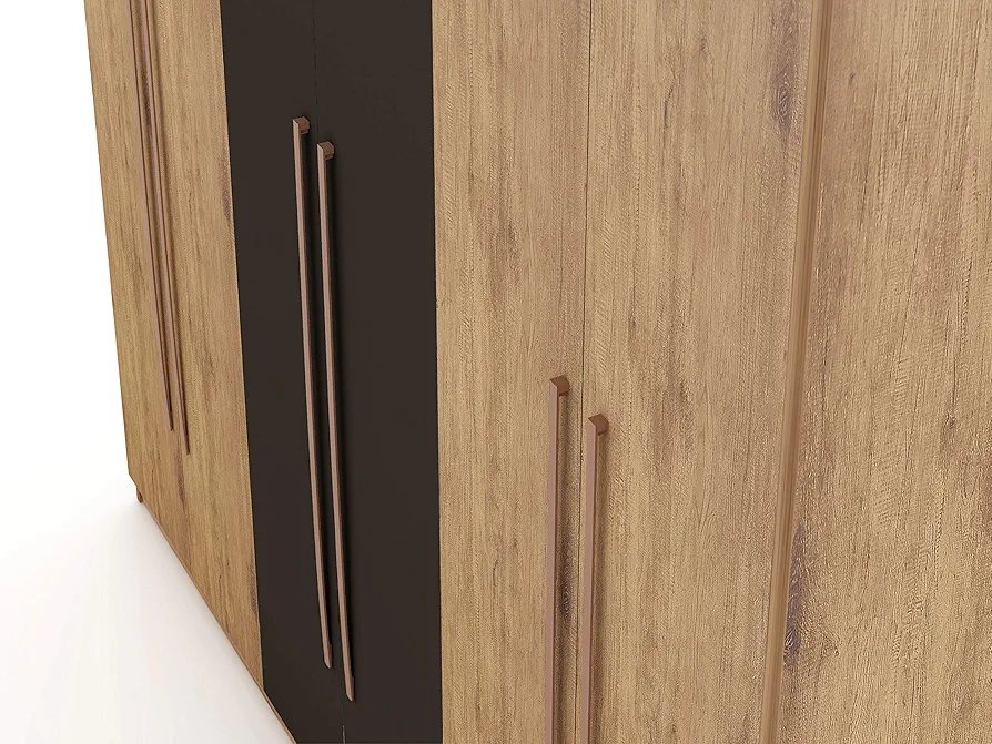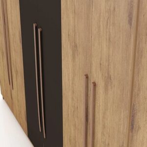 A bold blend of warm wood and matte grey doors with sleek metal handles — designed to deliver premium style and generous storage in one stunning statement.