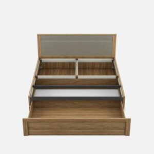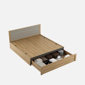 Treow Nester King Size Bed is a perfect blend of modern elegance, smart storage and long-lasting durability. Crafted in a rich Sebastian Oak finish with a high-grade melamine coating, this bed adds warmth and sophistication to any contemporary bedroom.