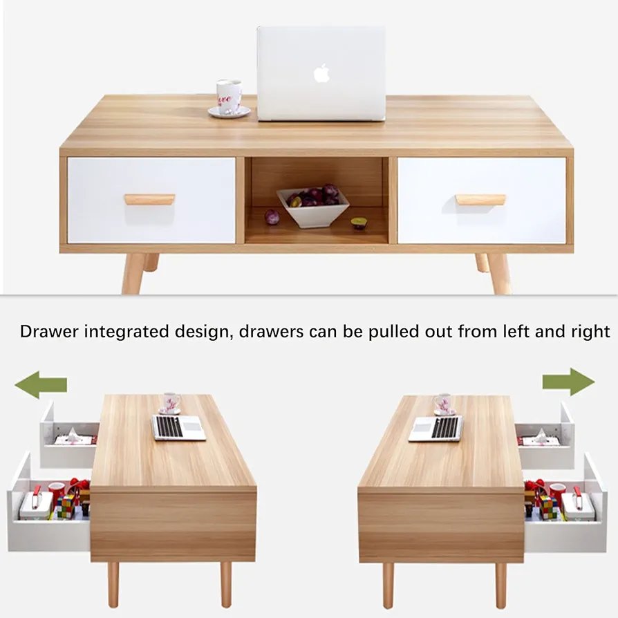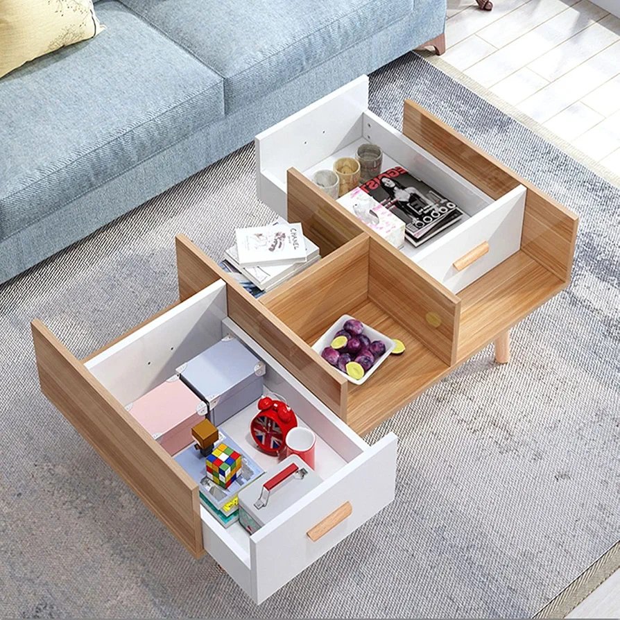 A fresh white coffee table with twin drawers and open storage — designed to keep your living room bright, organized, and effortlessly modern